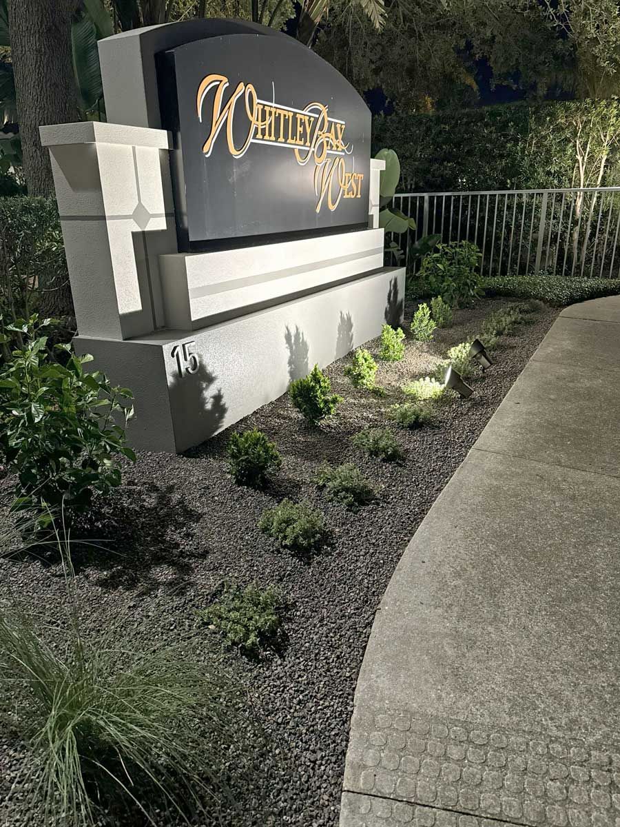 We reset the front entrance flower bed for a clean, updated look and upgraded the outdoor lighting for better nighttime visibility, creating a professional, polished entrance that welcomes guests day and night. - A Contractor’s Backyard Oasis